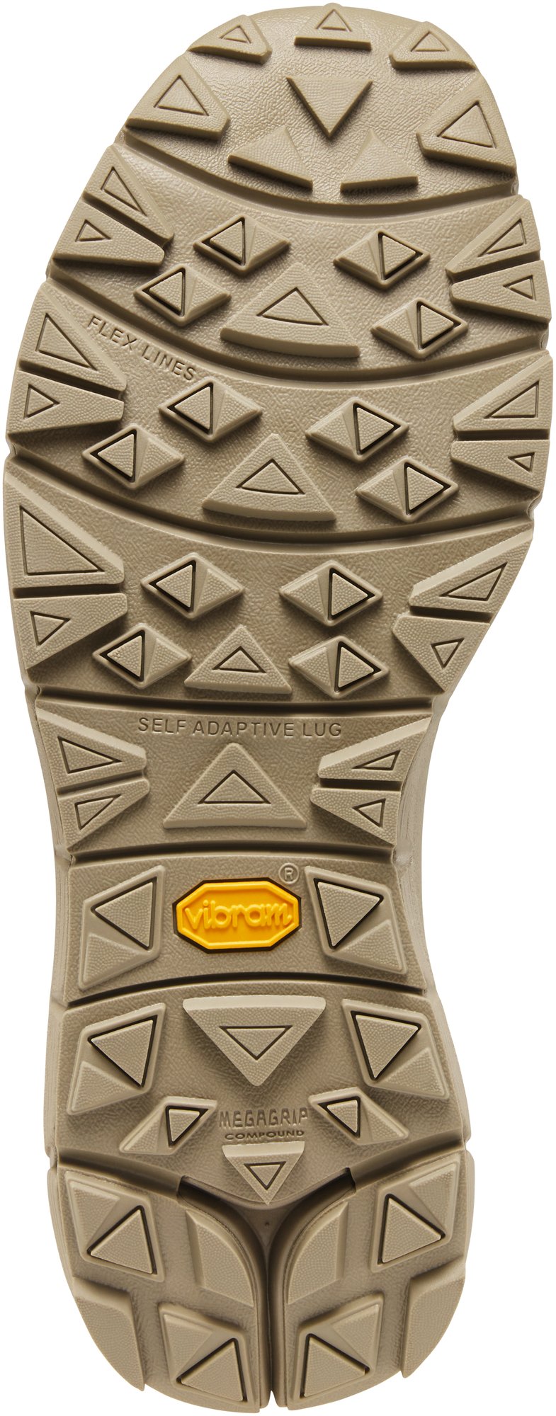 With its self-adapting lugs and specially formulated Megagrip compound, this outsole provides incredible grip on both wet and dry surfaces. Vibram® Traction Lug technology increases the outsole's surface area for greater traction.