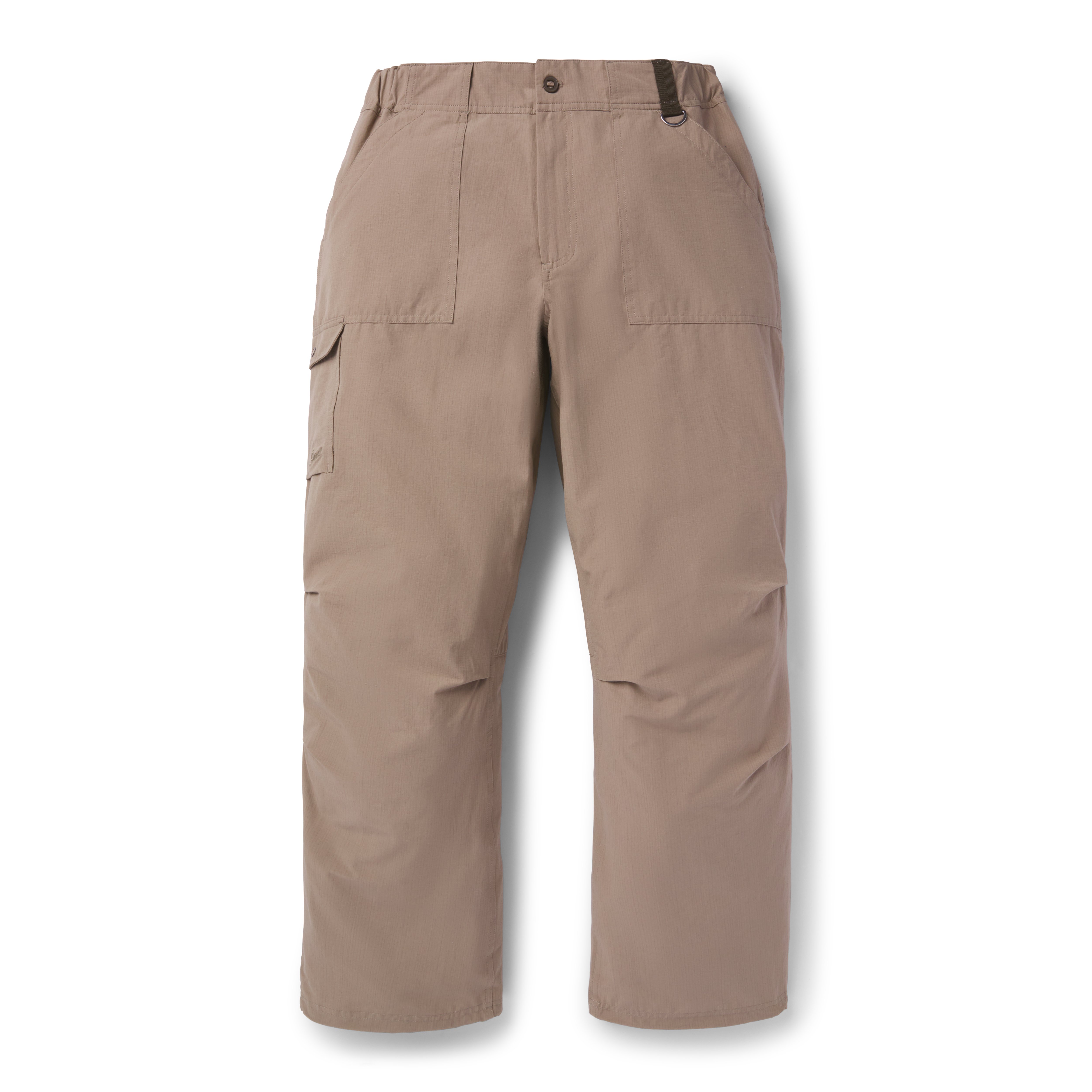 They’re constructed from an ultralight, high-performance blend of ripstop nylon, cotton and spandex that resists tears and cools naturally by wicking moisture away from the skin. They offer everything you could want in a pair of well-made trail pants. Like a large side cargo pocket big enough to stash your phone, a utility D-ring for clipping keys, shockcord adjustable hems, and an elastic waistband with belt loops for extra versatility. The roomy relaxed fit enhances airflow and regulates temperature, while articulated knees offer full range of motion.